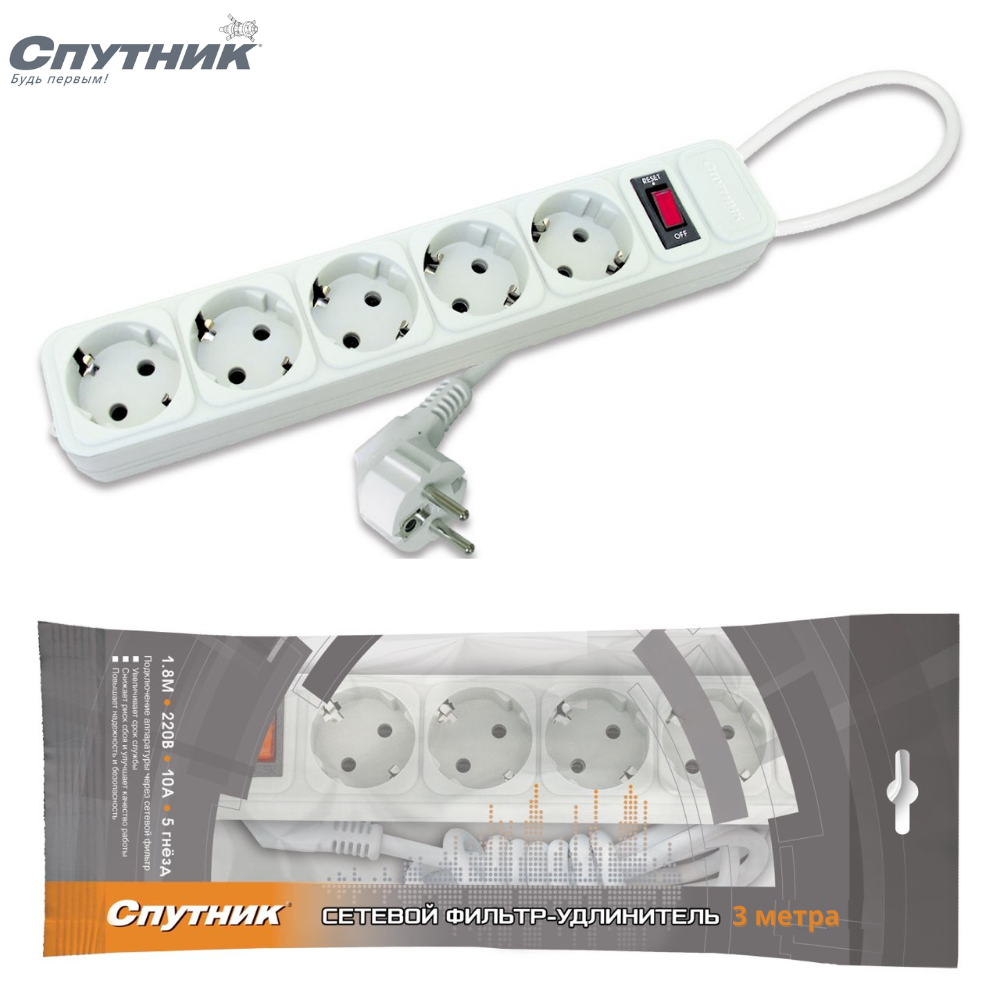 Сетевые фильтры и удлинители Сетевой фильтр - удлинитель Спутник SP-530 3м, белый