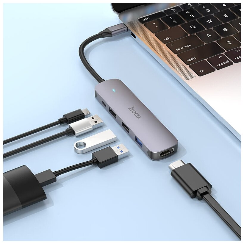 Hoco HB27/ Type-C хаб 5в1 (USB-C + 2 x USB2.0 + USB3.0 + HDMI) хаб для MacBook Apple и Windows