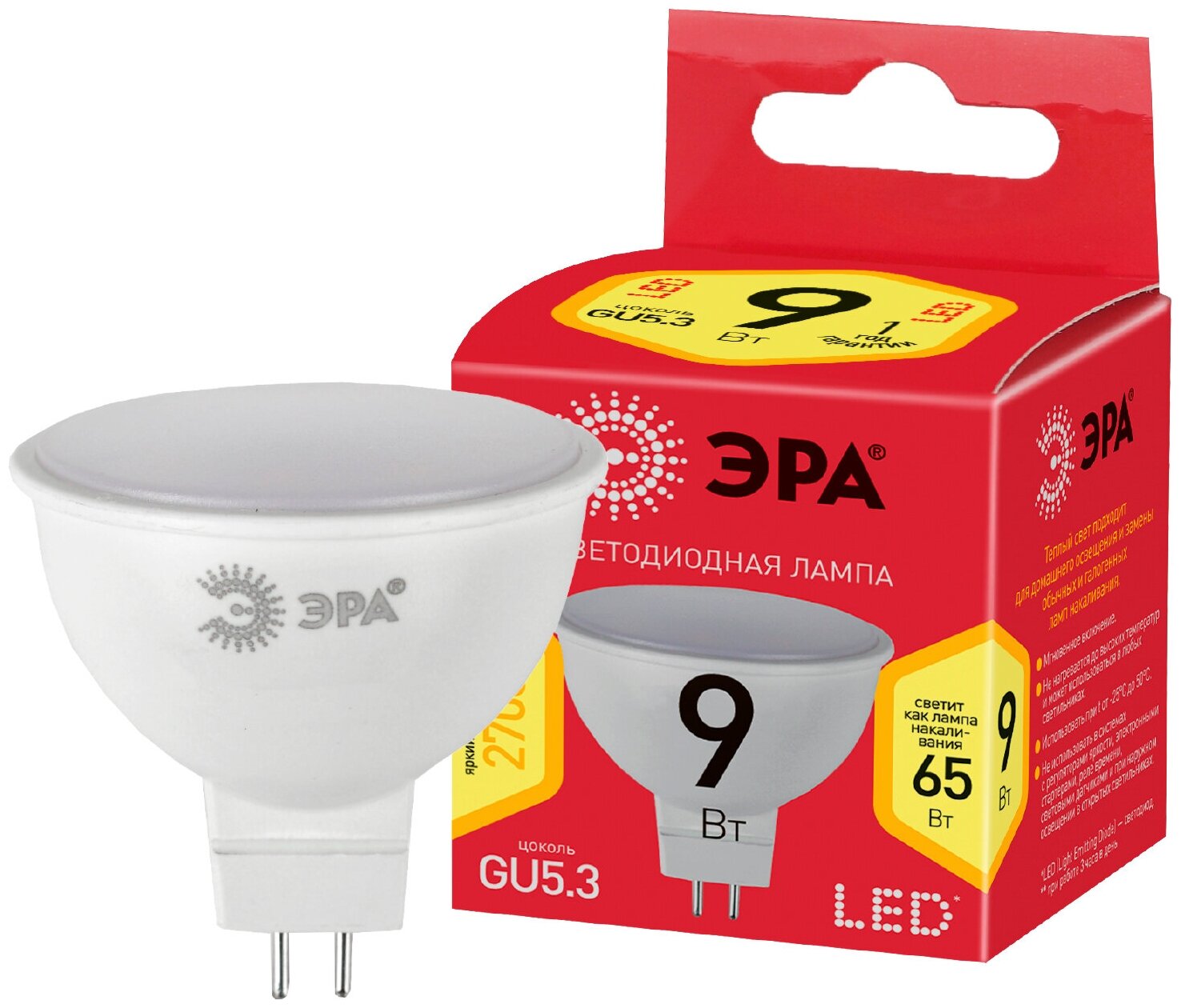Лампочка ЭРА ECO LED MR16-9W-827-GU5.3 ЭРА (диод, софит, 9Вт, тепл, GU5.3) (10/100/3200)