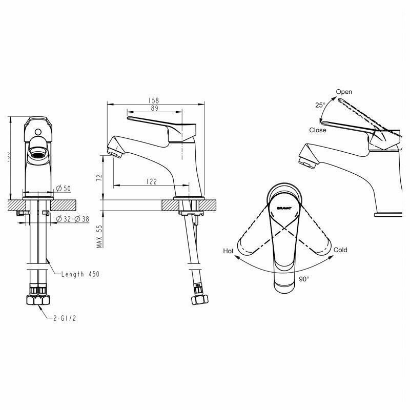 | Подвод воды | шланги / 450 мм / G 1/2" |