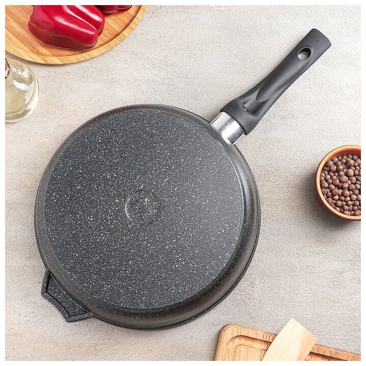 Лучшие цены. Сковороды серии Granite выполнены из прочного литого алюминия. Посуде не страшна деформация под воздействием высокой температуры, изделие прочное и лёгкое. Отличительная черта посуды Granite — усиленное кристаллами минералов антипригарное покрытие Greblon, разработанное немецкой компанией Weiburger Coatings. Оно защищает от пригорания, позволяет экономить масло и не выделяет вредных веществ. Также покрытие имеет высокую износостойкость — более 12 тысяч циклов мойки. Магазины в вашем городе.