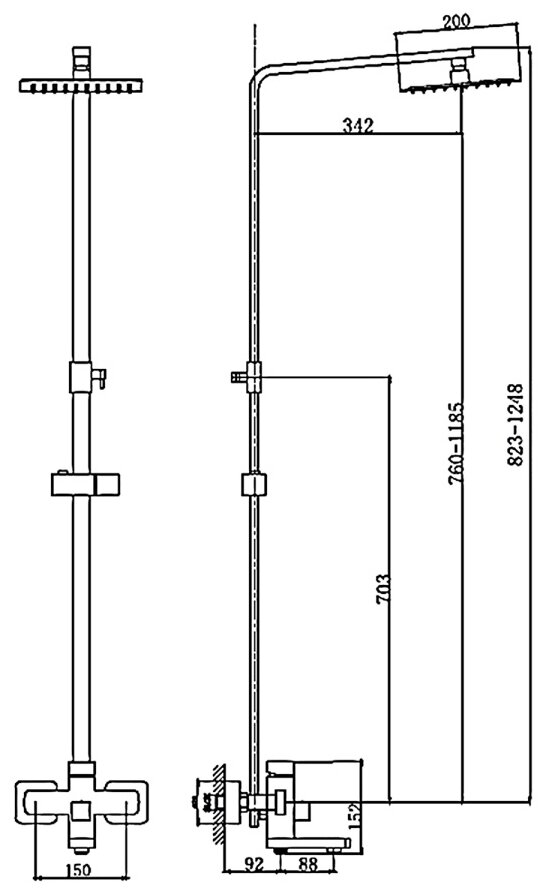 Душевая стойка HAIBA HB24803, черный матовый 1500 мм