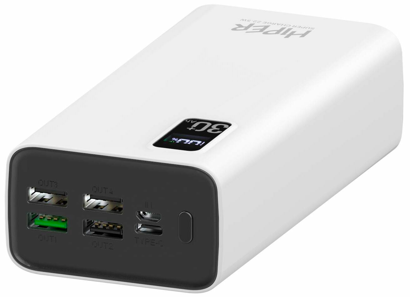Powerbank Внешний аккумулятор Hiper Fast 30000 30000mAh 5A QC PD 5xUSB белый (FAST 30000 WHITE)