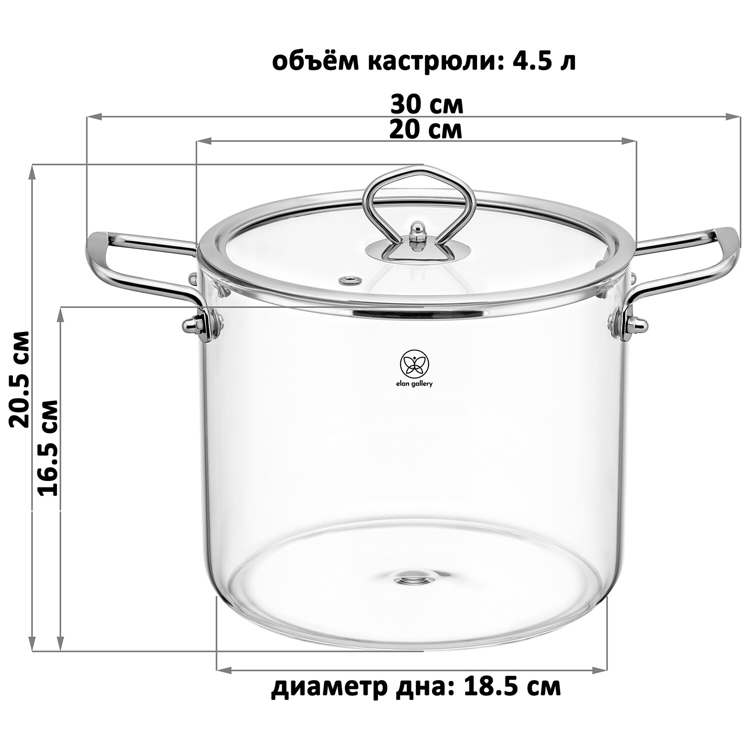 Кастрюли Кастрюля 4,5 л 30х20х20,5 см Elan Gallery Crystal glass с крышкой