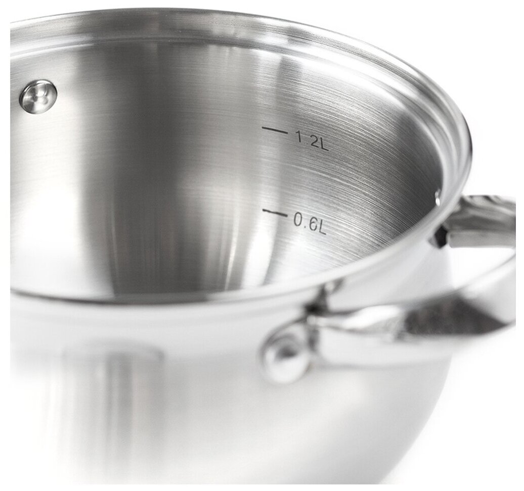 Кастрюля нерж.сталь с крышкой, объем 1,2л, стенки 0,6мм, Практичная, П-1412 TimA (арт. 838063)