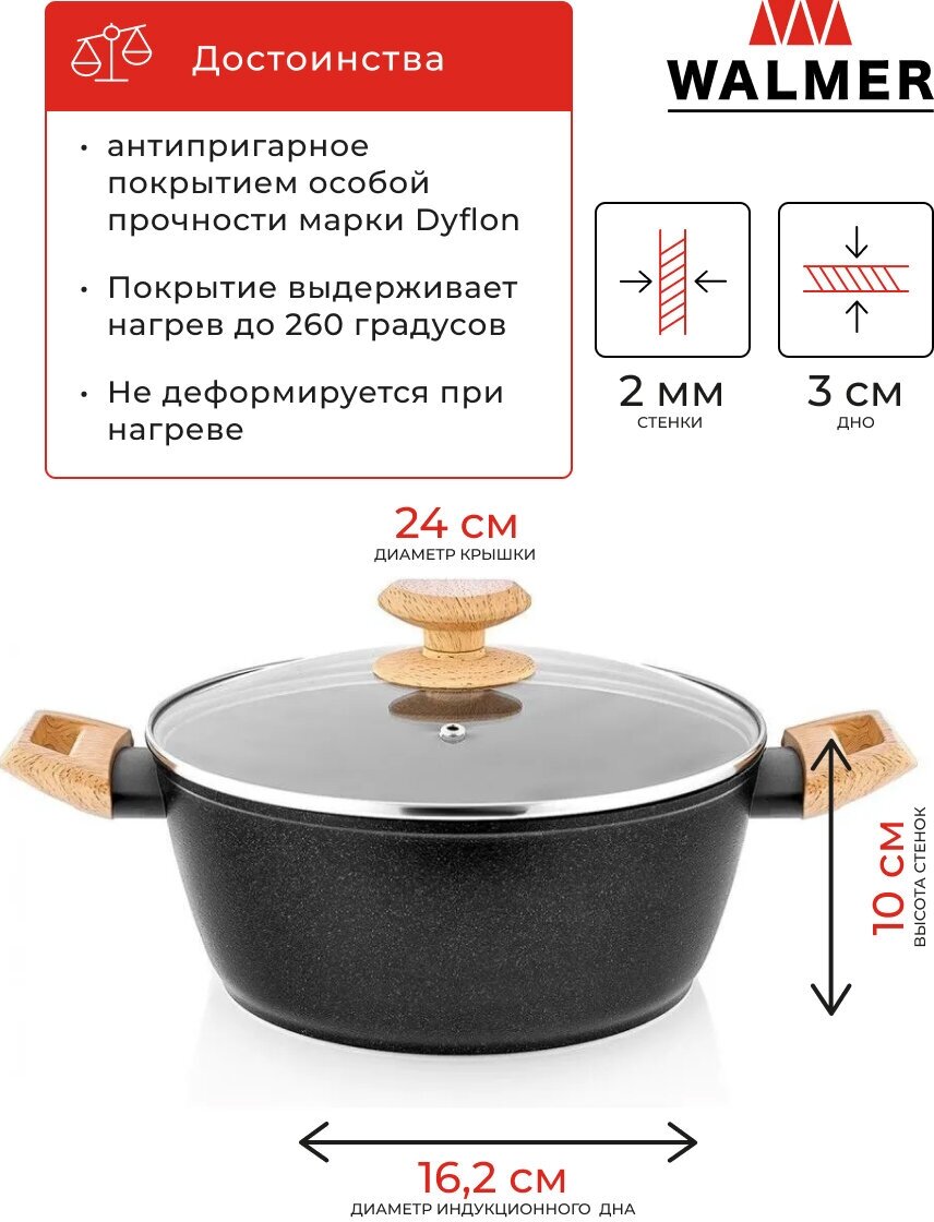 Кастрюля Кастрюля WALMER с крышкой YORK 24*10 см, 4л индукция (W34208124i)