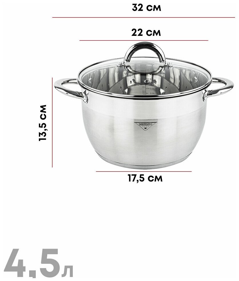 Кастрюли Кастрюля с крышкой "MercuryHaus", Turno (6) 4,5 л 22*13,5 см