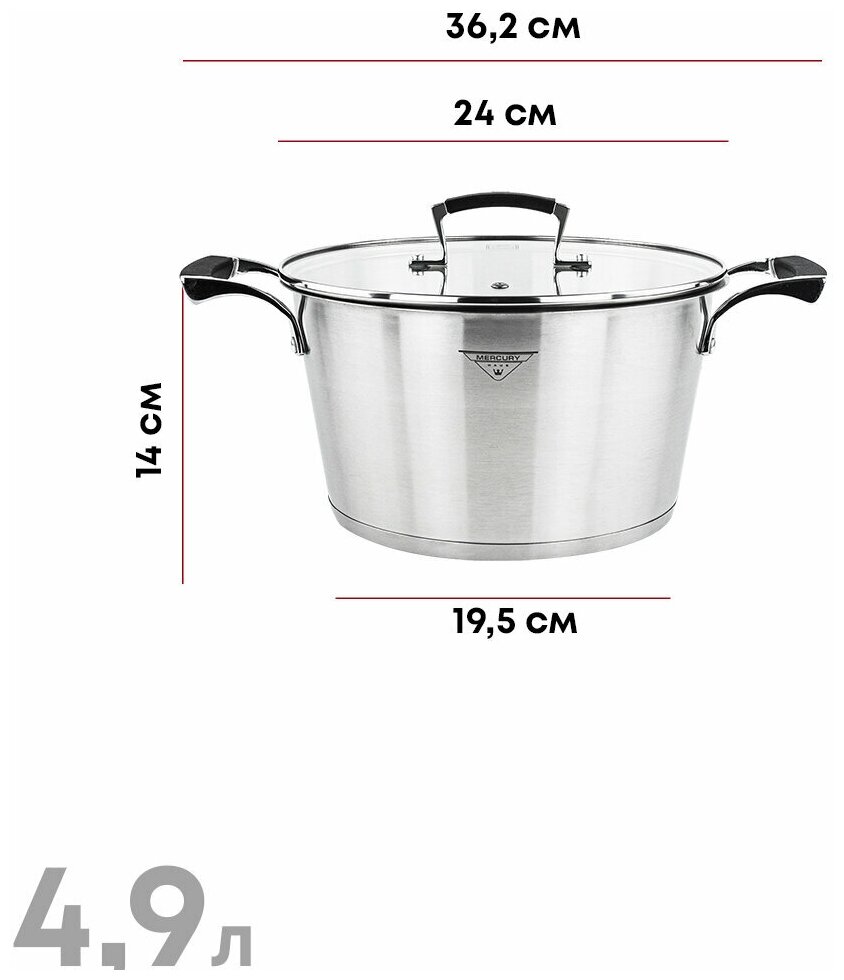 Кастрюля Кастрюля с крышкой "MercuryHaus", Turno (6) 4,9 л 24*14 см