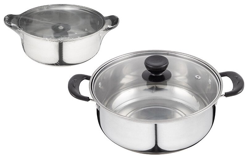 Лучшие цены. Кастрюля Promo, объем 2,9 л, из нержавеющей стали с крышкой из жаропрочного стекла Кастрюля Promo, объем 2,9 л, из нержавеющей стали с крышкой из жаропрочного стекла Материал: нерж сталь 410, жаропрочное стекло, нейлон. толщина стенок 0,3 мм, объем 2,9 л. Размер: 23,5 (диаметр)*9,5 (высота без крышки) см. Размер с ручками: 30 см. Высота с крышкой: 13 см. Дно однослойное. Подходит для всех типов плит. Не рекомендуется мыть в посудомоечной машине. Зеркальная полировка корпуса внутри и снаружи. Магазины в вашем городе.