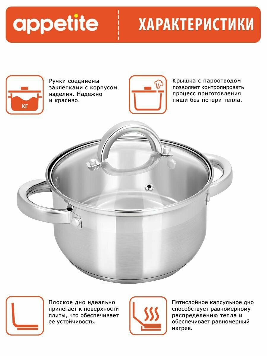 Кастрюля с крышкой Appetite Elisa, нержавеющая сталь, 4.5 л