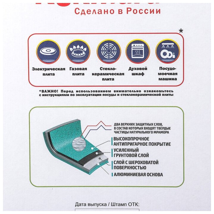 | Антипригарное покрытие | каменное (мрамор, гранит) |