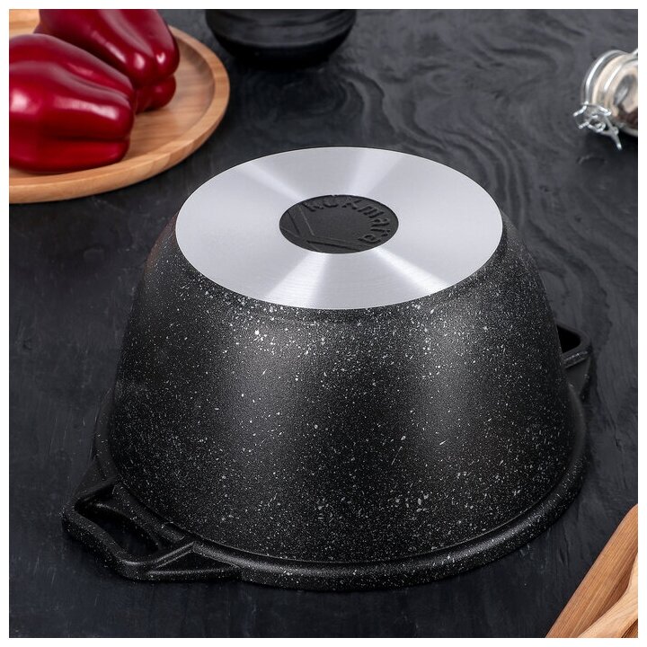 Кастрюля KUKMARA, 4 л, стеклянная крышка, антипригарное покрытие, цвет тёмный мрамор