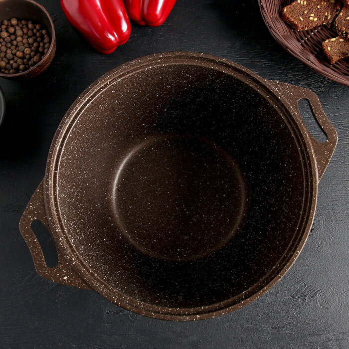 "Кастрюля с антипригарным покрытием со стеклянной крышкой Kukmara (Кофейный мрамор) кмк62-1а, 6 л"