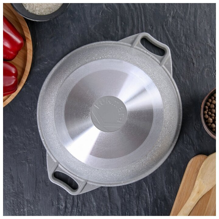 Кастрюля KUKMARA, 2 л, стеклянная крышка, антипригарное покрытие, цвет серый мрамор