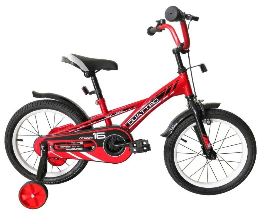 Лучшие цены. TechTeam Quattro - отличная бюджетная детская модель в хорошей комплектации. Выпускается в четырех модификациях - 12 дюймовые колеса (рост 96 - 102 см - возраст 3-4 года) 14 дюймовые колеса (рост 98 - 104 см - возраст 3-5 лет) 16 дюймовые колеса (рост 100 - 125 см - возраст 5-7 лет) 18 дюймовые колеса (рост 105 - 130 см - возраст 6-8 лет) 20 дюймовые колеса (рост 125 -136 см - возраст от 6 лет) Велосипед собран на стальной раме с геометрией удобной для ребенка. Магазины в вашем городе.