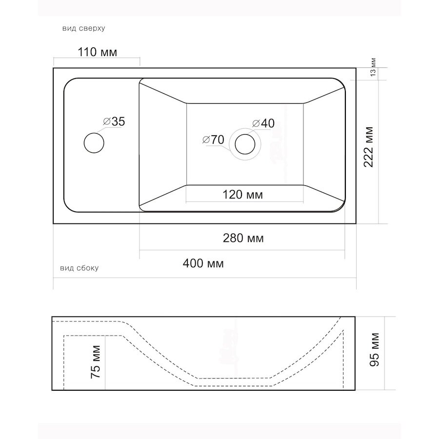| Диаметр отверстия под смеситель | 35 мм |