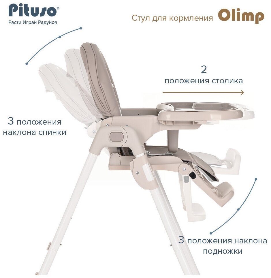 Стульчик для кормления ребенка Pituso Olimp от 0+, 2 в 1 шезлонг, чехол ECO кожа, светло-серый 7 055 ₽ Подробнее