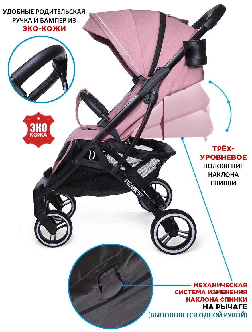 Коляски Коляска прогулочная Dearest 819 PLUS модель 2022, с механической спинкой, большим капюшоном, накидкой для ног, полная комплектация, черная рама (дымчато-розовый)