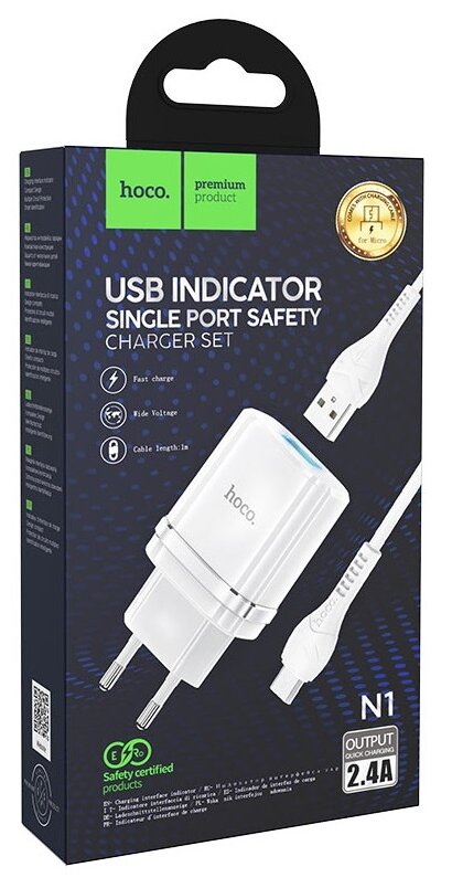 HOCO N1 Ardent single port charger set(for Micro)(EU) white 483 ₽ Подробнее