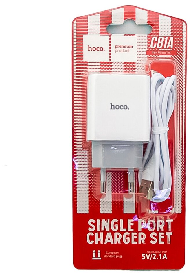 Лучшие цены. Сетевое зарядное устройство Hoco C81A Asombroso – стильный и компактный аксессуар, который всегда будет под рукой. Его легко положить в карман или сумку. Встроенная функция защиты от перегрузок и короткого замыкания, вес 34 г. Сетевой адаптер фирмы Hoco модель "C81A", цвет белый, имеет 1 порт USB по 2.1А + кабель Hoco c разъемом microUSB. Адаптер изготовлен из огнестойкого пластика, имеет интеллектуальную микросхему для определения заряжаемого устройства и отключения подачи электроэнергии при. Магазины в вашем городе.