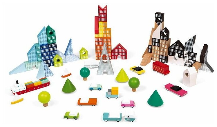 Лучшие цены. «Город» - многофункциональный игрушечный набор. Это и кубики, и конструктор, и сюжетно-ролевой набор. Вариативность и разнообразие элементов позволяет воспроизвести множество сюжетов игры. Кроме того, с таким набором дети больше узнают о современной инфраструктуре, особенностях функционирования города и т. д В комплекте 70 деревянных деталей различных форм и размеров. Магазины в вашем городе.