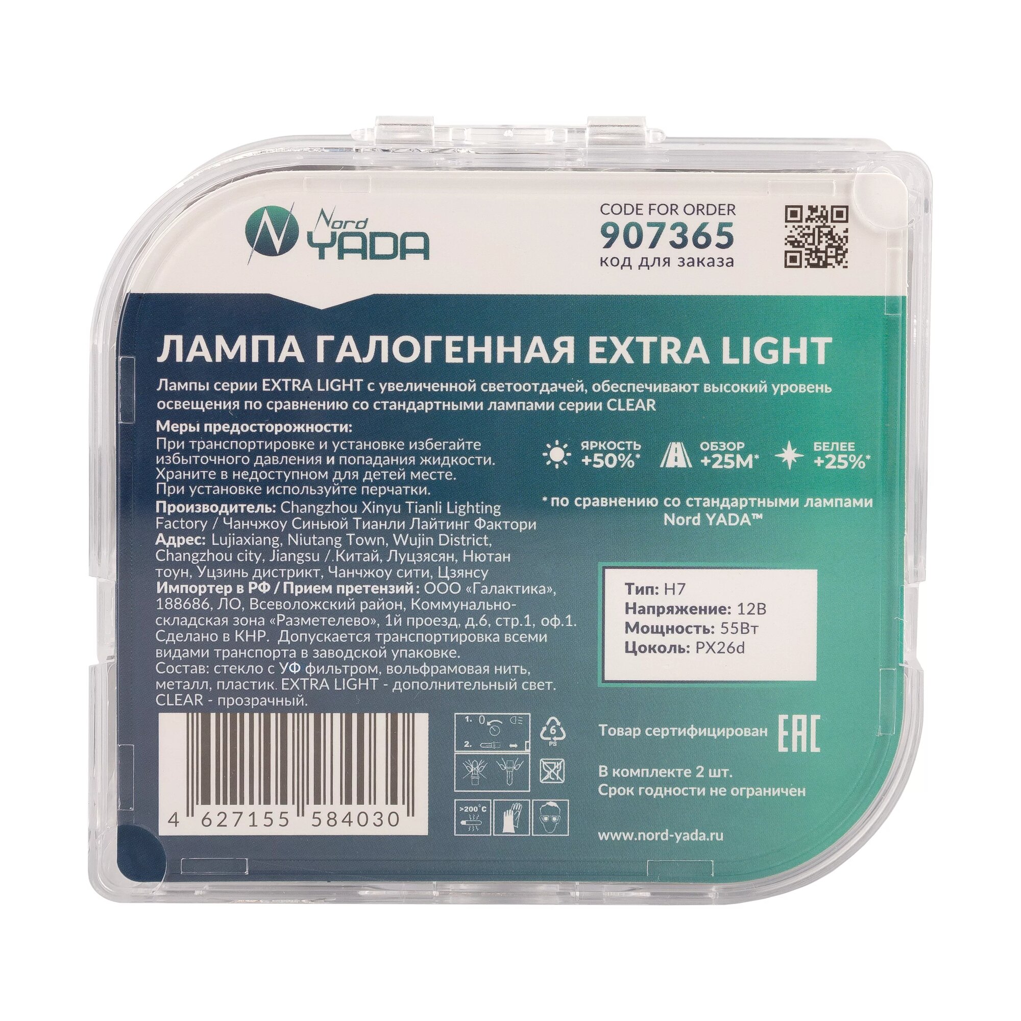 NORD YADA 907365 Лампа галогенная H7 12V 55W "NORD YADA" Extra Light +50% (2 шт.)