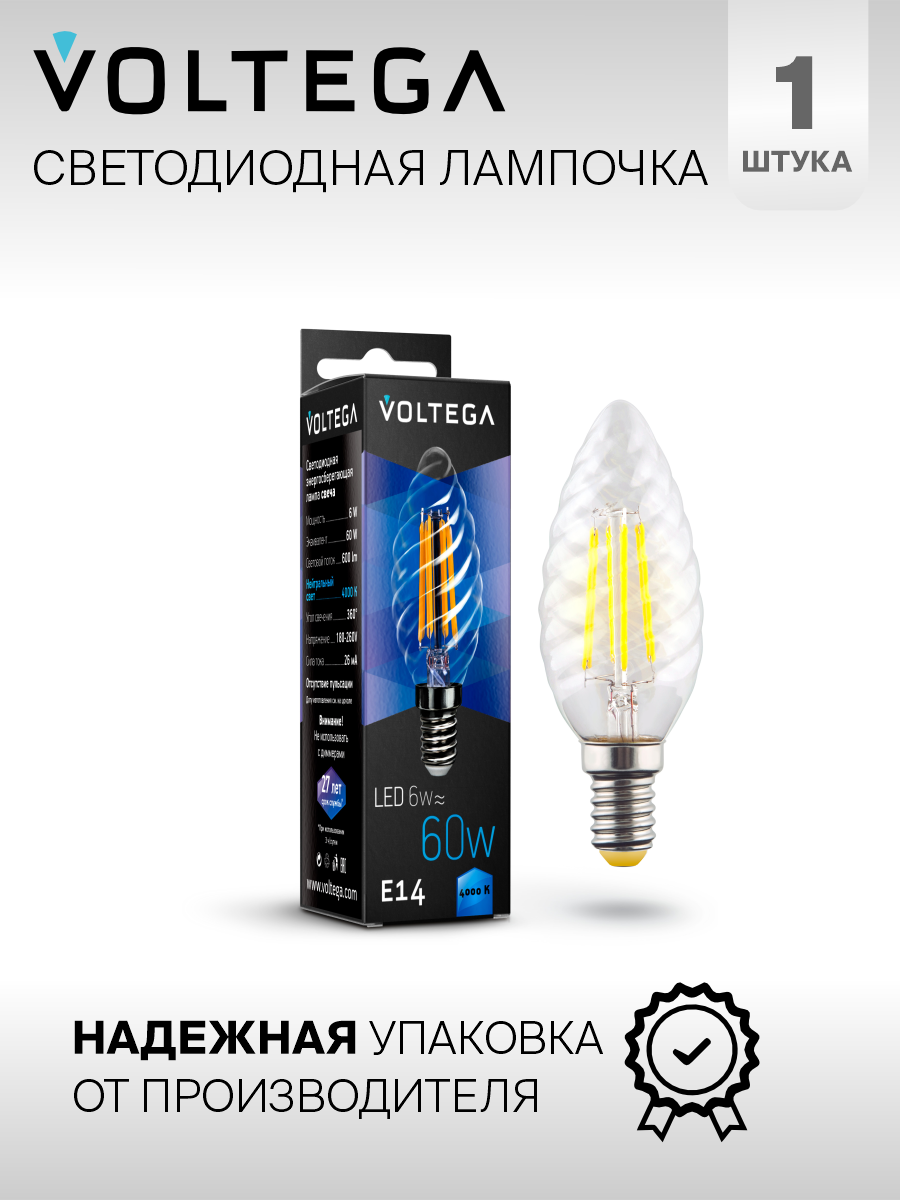 7028 (VG10-CC1E14cold6W-F) Voltega Лампа светодиодная филаментная E14 6W 4000К, Свеча витая 185 ₽ Подробнее
