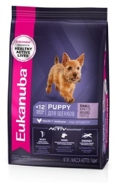 Корм для щенков мелких пород Eukanuba Puppy Small Breed <12 months сухой, 3 кг
