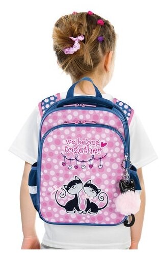 Школьный рюкзак (ранец) Ранец Brauberg Quadro, 3 отделения, с брелоком, Friendly kittens, 37*28*18 см (229952)