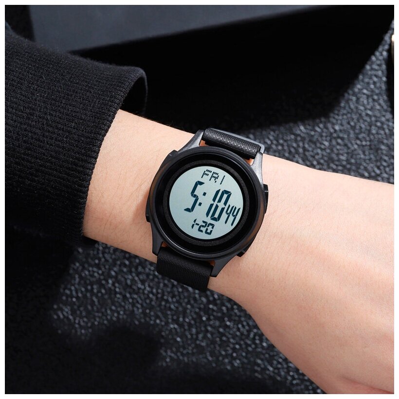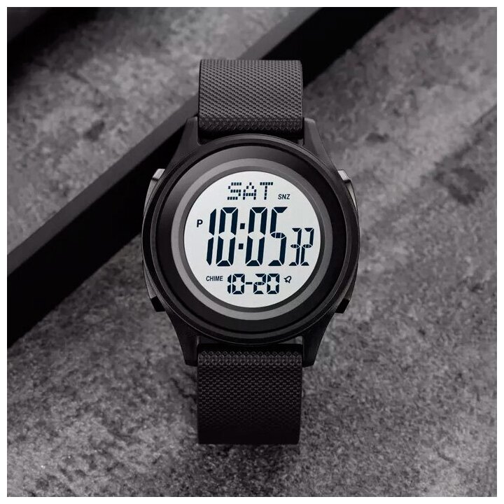 Наручные часы Часы наручные мужские, женские электронные спортивные водонепроницаемые SKMEI 1893 черные/белые круглые с секундомером и будильником