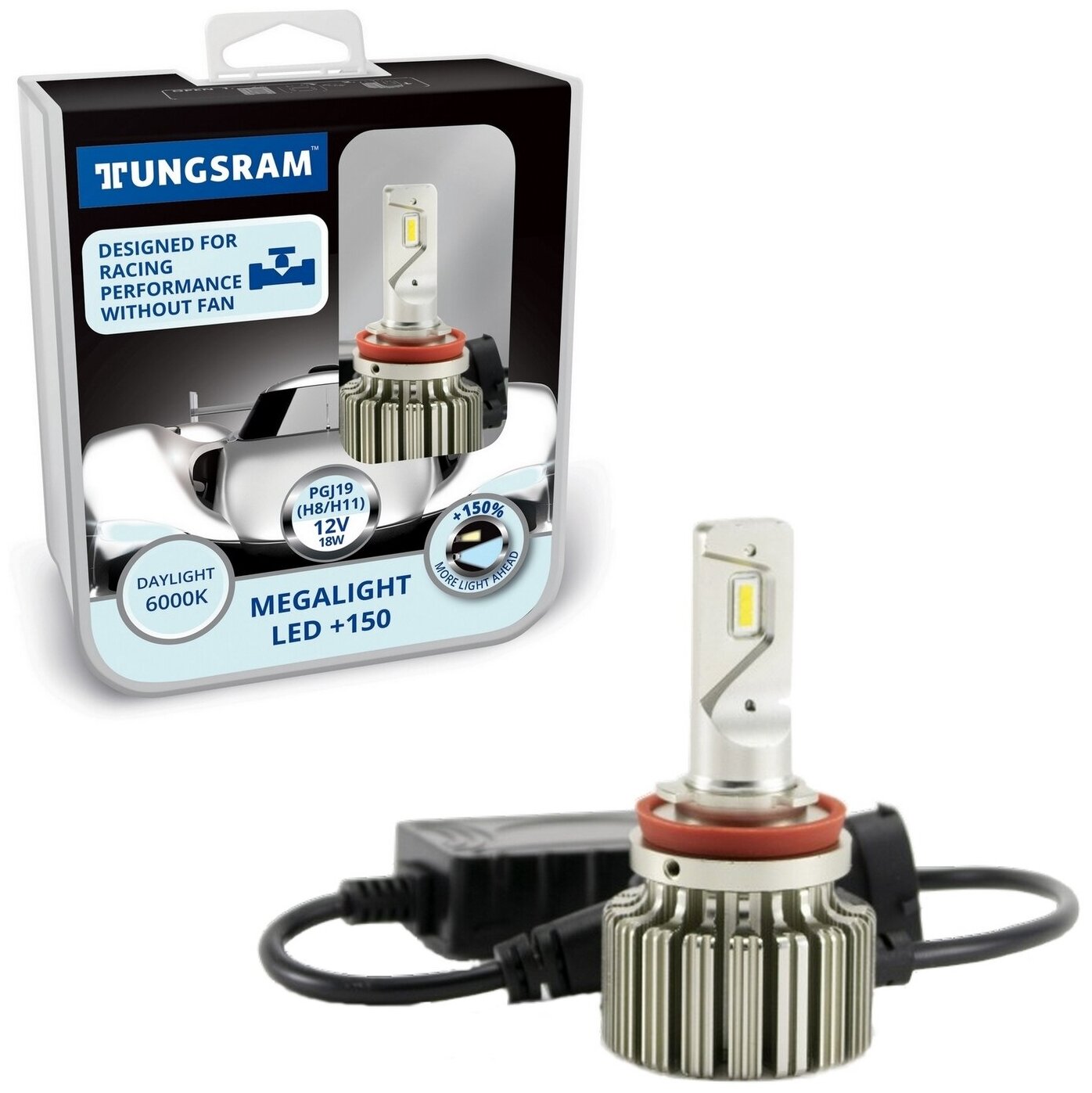 Лучшие цены. Tungsram Megalight LED +150 H11 / H8 / H16 12V 18W PGJ19-1 6000K (2шт) 60480 PB2 Набор из двух высококачественных автоламп от известного и уважаемого венгерского бренда Tungsram обеспечит вам белый свет для более безопасного и комфортного ночного вождения и превосходную видимость и комфорт для глаз. Лучшее обнаружение знаков и препятствий, +150% света. Дневной свет ночью — цветовая температура 6000К для холодного белого света. Магазины в вашем городе.