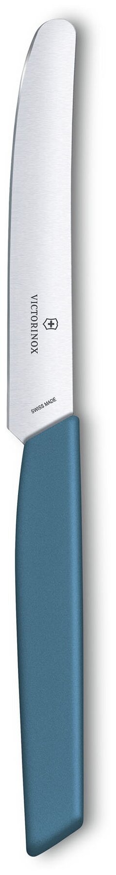 Нож кухонный Victorinox Swiss Modern, столовый, для томатов, 110мм, заточка серрейтор, стальной, синий [6.9006.11w2]