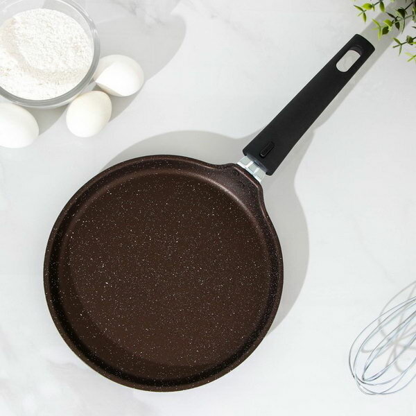 Сковородки Сковорода блинная, d=22 см, пластиковая ручка, антипригарное покрытие, цвет кофейный мрамор