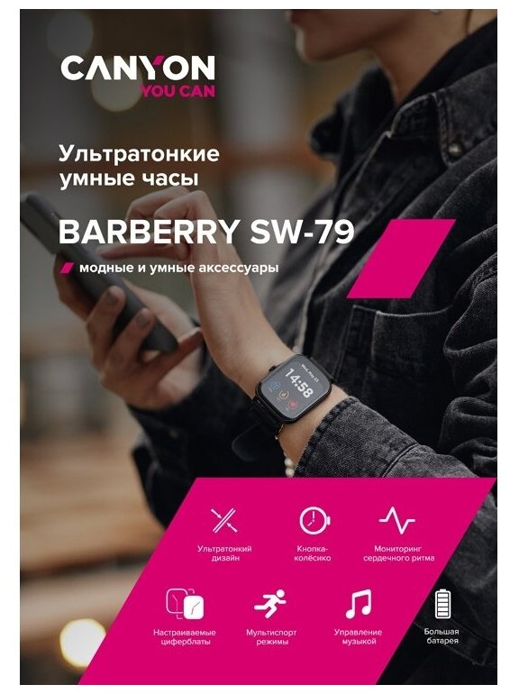 Носимый гаджет Умные часы CANYON Barberry SW-79, IP 67, BT 5.1, сенсорный дисплей 1.7, розовый