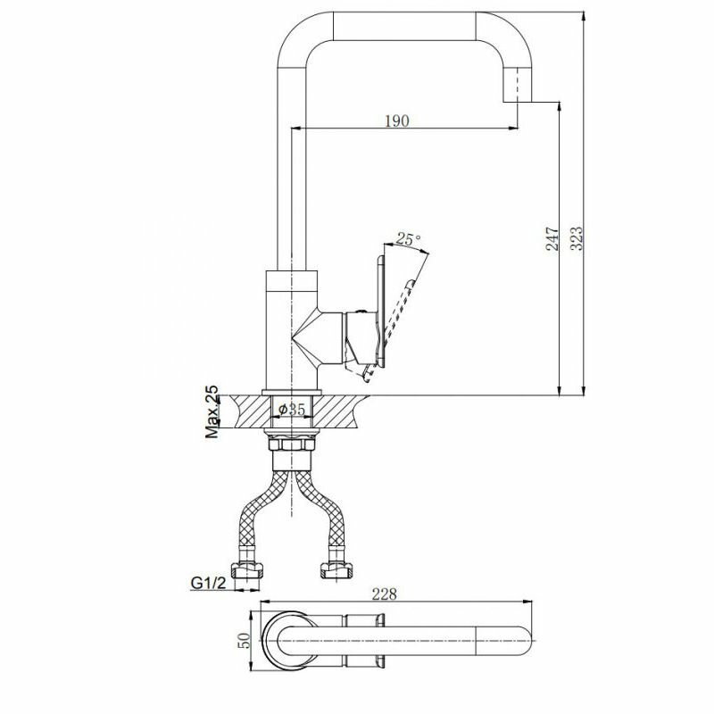 Смеситель одноручный для кухни с поворотным изливом RUSH Bruny (BR4335-22)