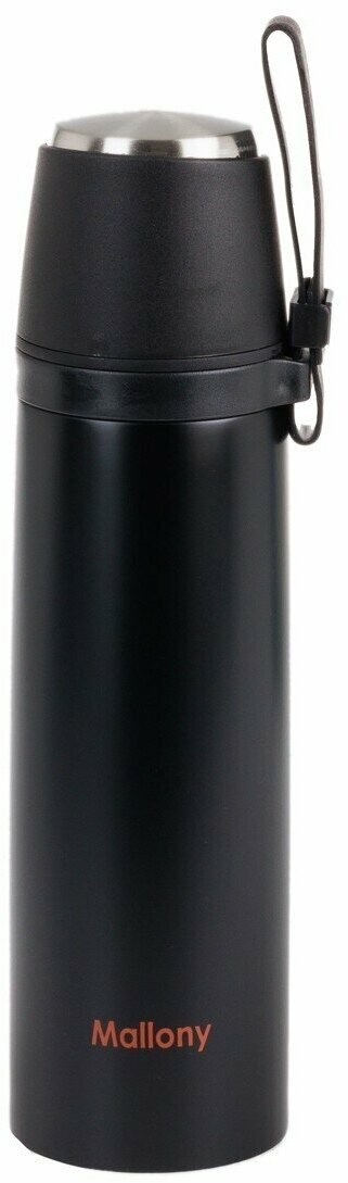 Термос Mallony NERO 005242, с крышкой-чашкой, с ремешком, 0,5л, нержавеющая сталь