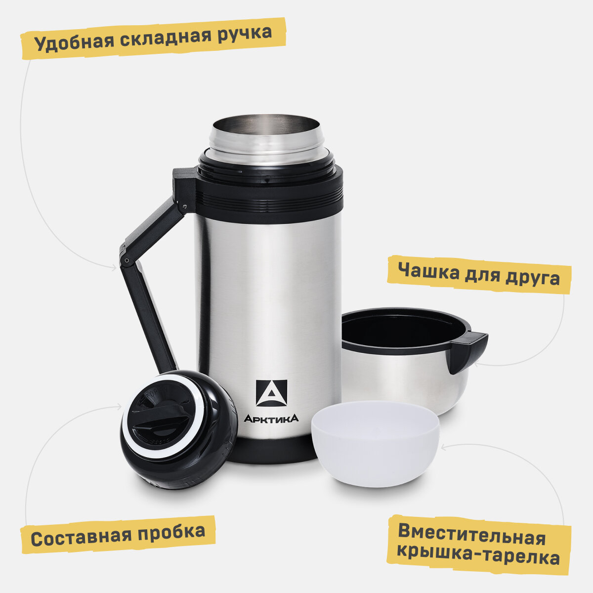 Термос с ручкой для чая и еды Арктика 201-1000 - Объем 1000 мл - Сталь 1 919 ₽ Подробнее