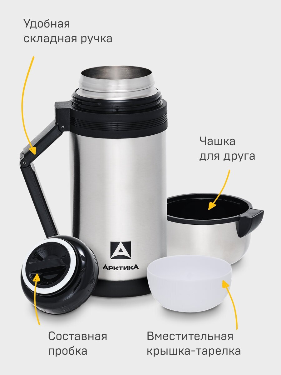 Термос с ручкой для чая и еды Арктика 201-1000 - Объем 1000 мл - Сталь 1 919 ₽ Подробнее