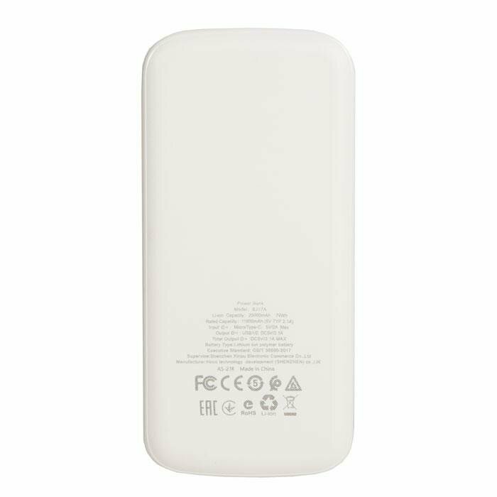 Powerbank аккумуляторы Внешний аккумулятор BOROFONE BJ17A Mike power bank, 2.1А (20000mAh), белый