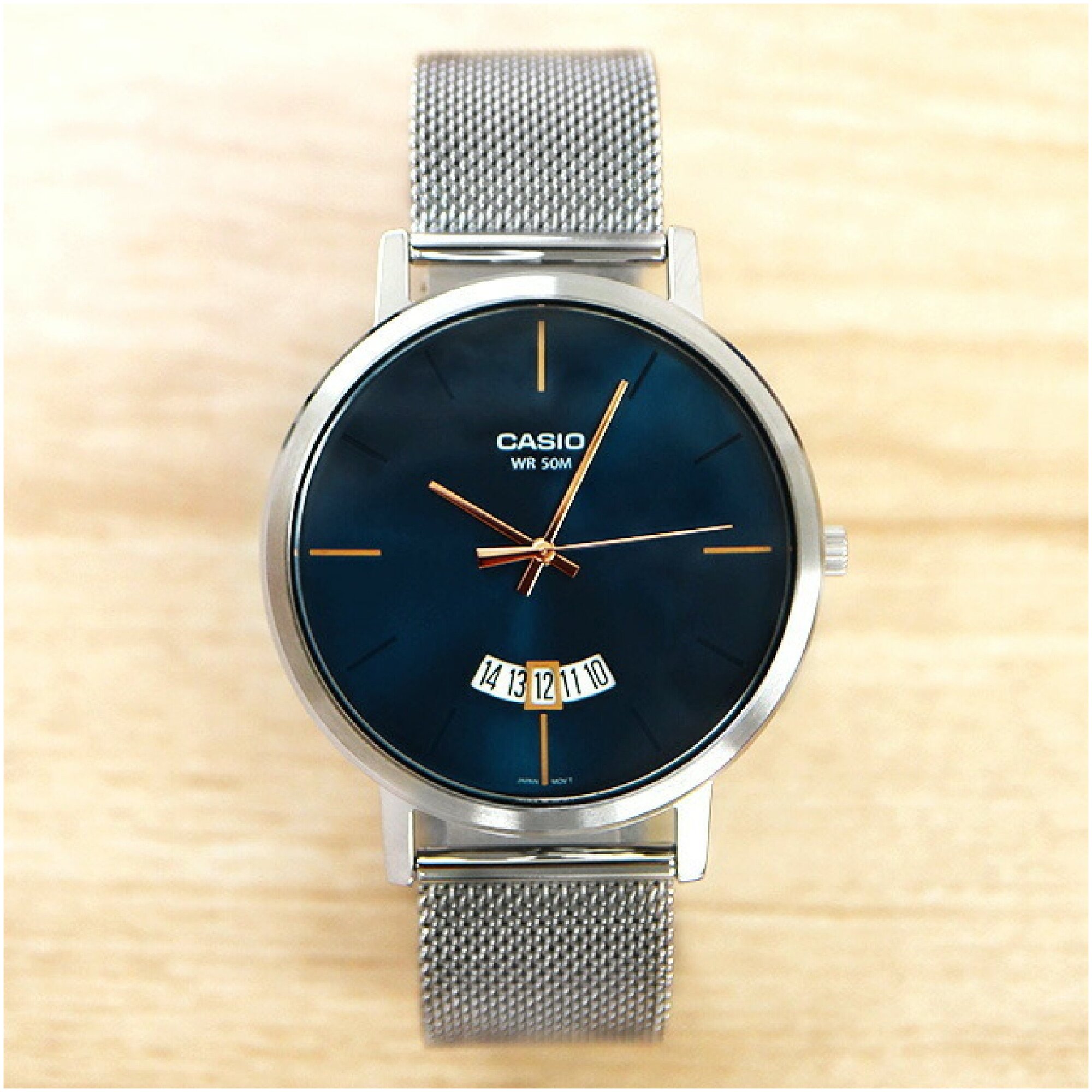 MTP-B100L-2E Casio наручные часы кварцевые WR50 (5 атм) мужские хром, коричневый отображение числа минеральное стекло