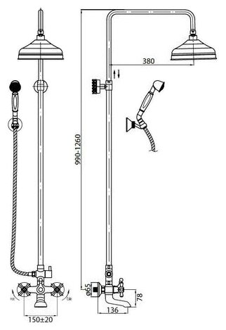 Cezares Душевая стойка со смесителем, с изливом, верхним и ручным душем CEZARES RETRO-C-CVD2-02