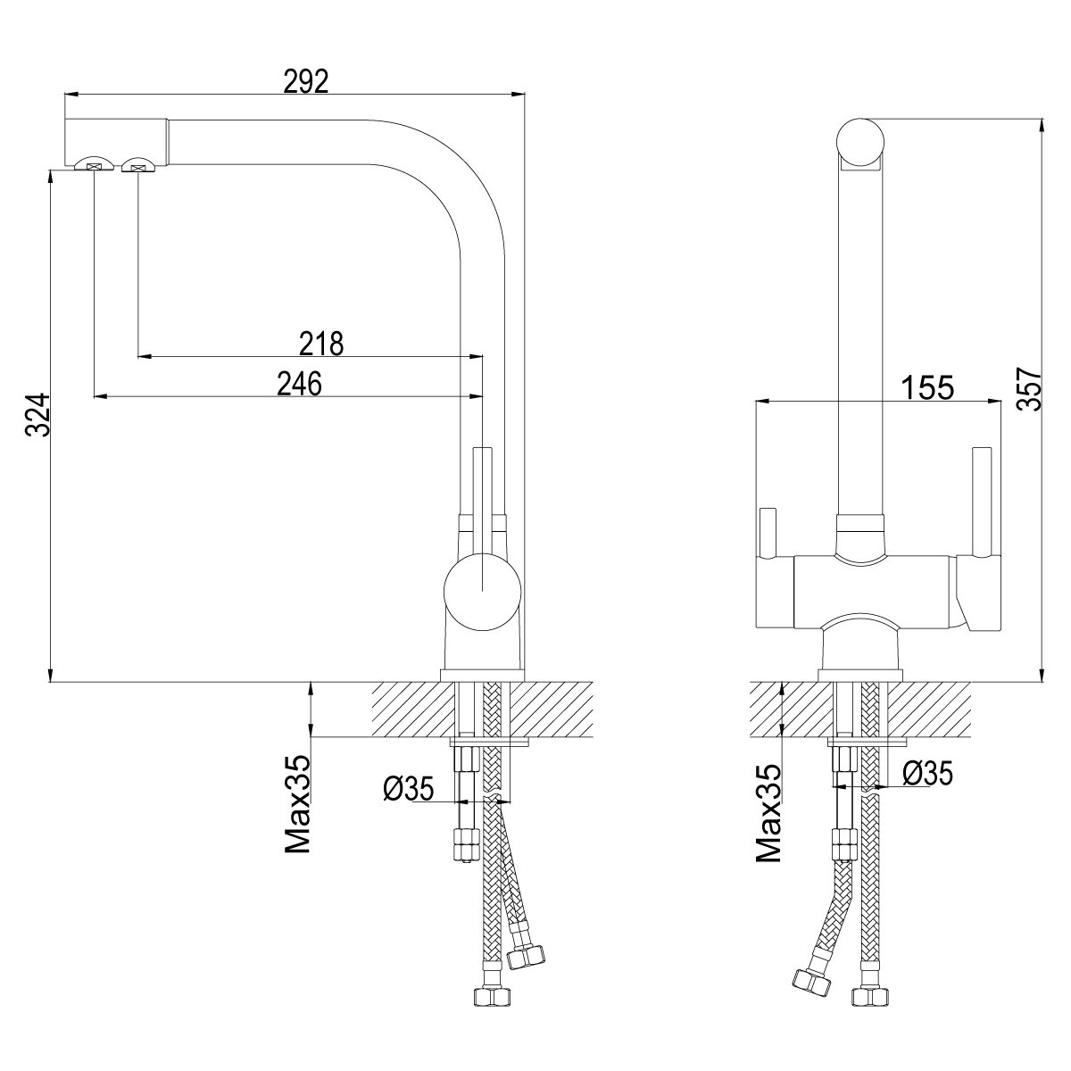 | Высота излива (конструкции) | 357 мм |