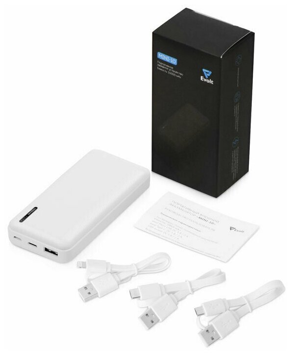 Powerbank Внешний аккумулятор Evolt "Mini-10", 10000 mAh, белый