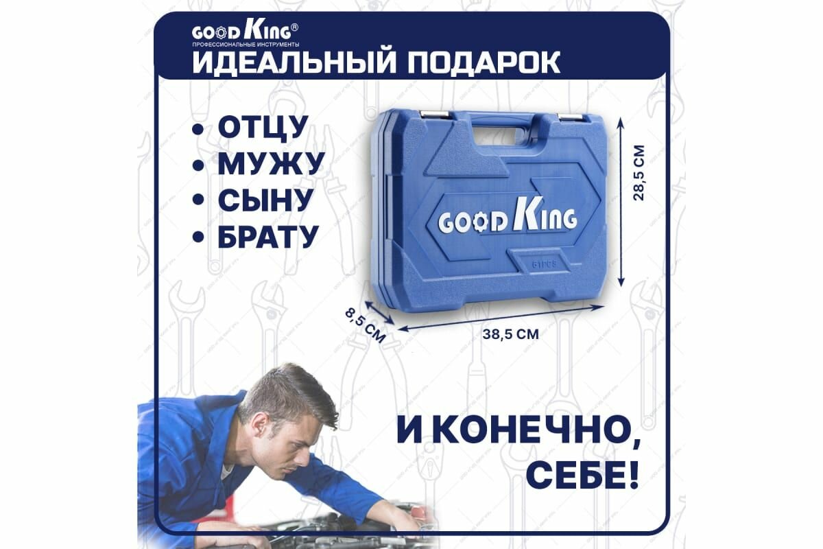 Наборы инструментов Набор инструментов для автомобиля GOODKING 61 предмет, 1/4 1/2, трещотка 72 зуба B-10061