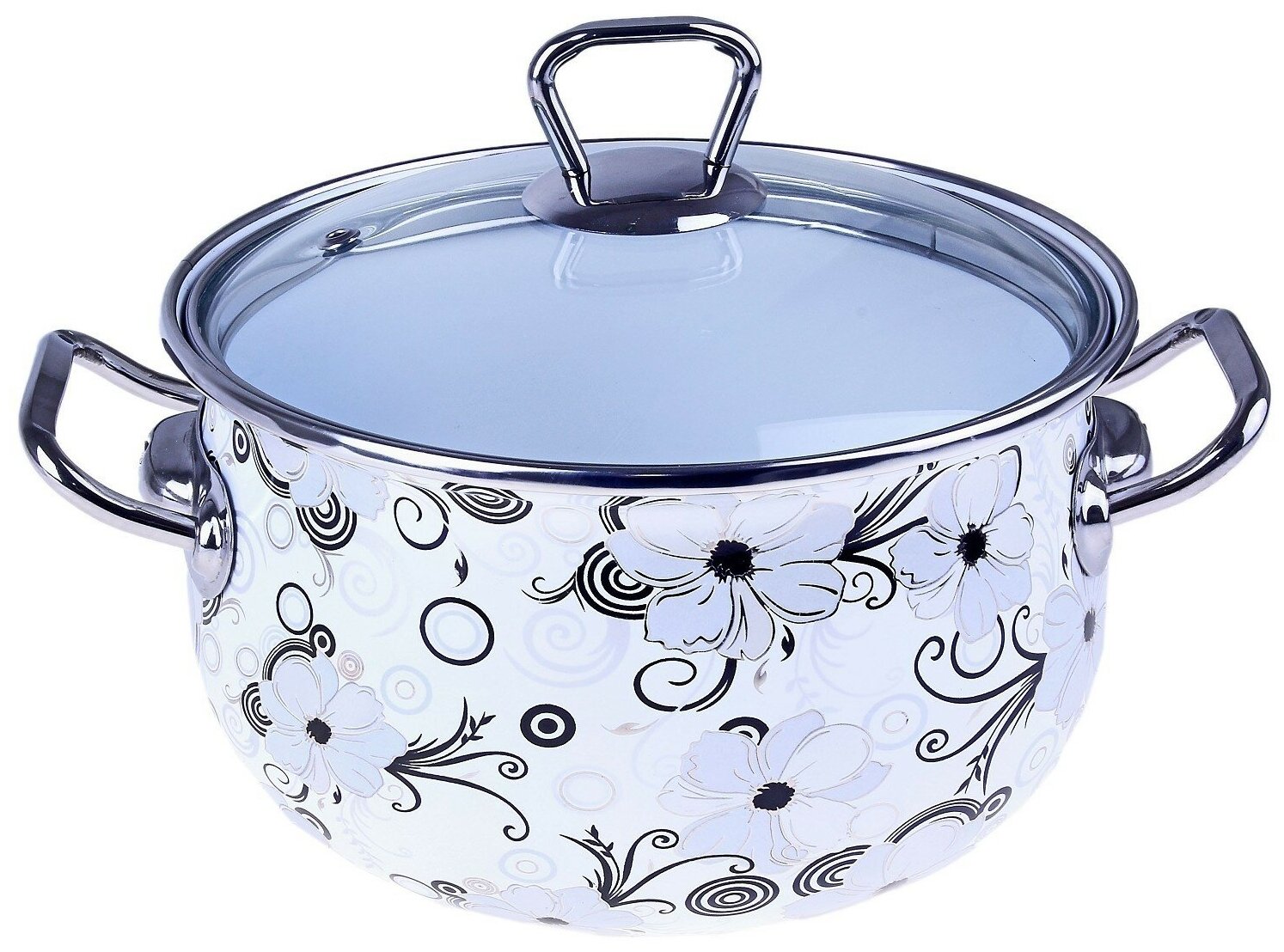 Лучшие цены. Серия: Полноцветная эмаль Материал: эмалированная сталь Тип внешнего покрытия: двухслойная эмаль Тип внутреннего покрытия: эмаль Цвет: Рисунок (Деколь) Полностью декорированная внешняя поверхность изделия Объем: 4,0 л Толщина бортов: 1,2 мм Тип ручки: Несъемная Ручки из нержавеющей стали "Холодные ручки" не нагреваются при использовании Стеклянные крышки с пароотводом Кастрюля Interos 1279 Кружево Из серии Полноцветная эмаль привлекает своим нежным цветом и утонченным декором. Магазины в вашем городе.