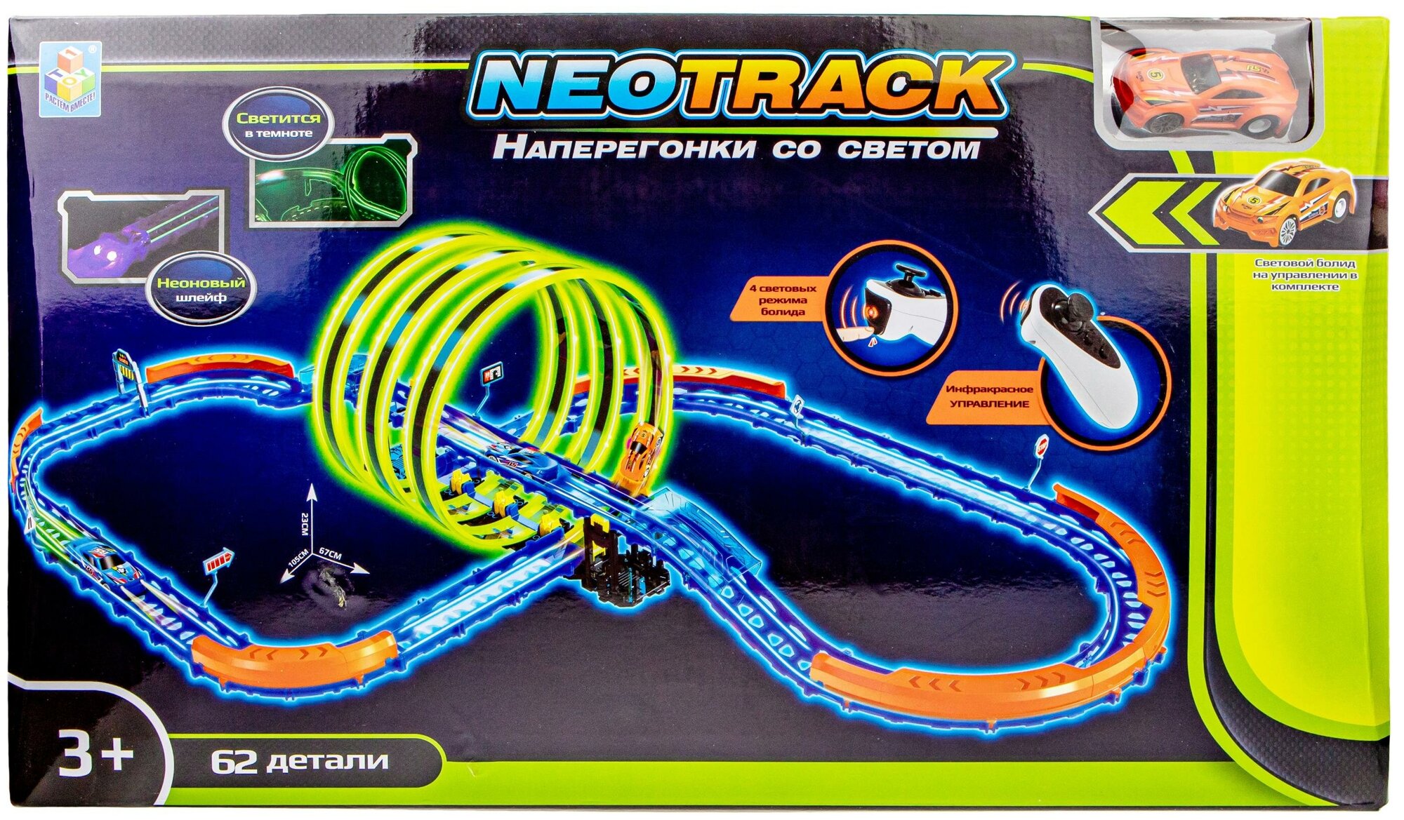 Автотрек 1TOY Т21043 Neotrack светящийся, 62 детали