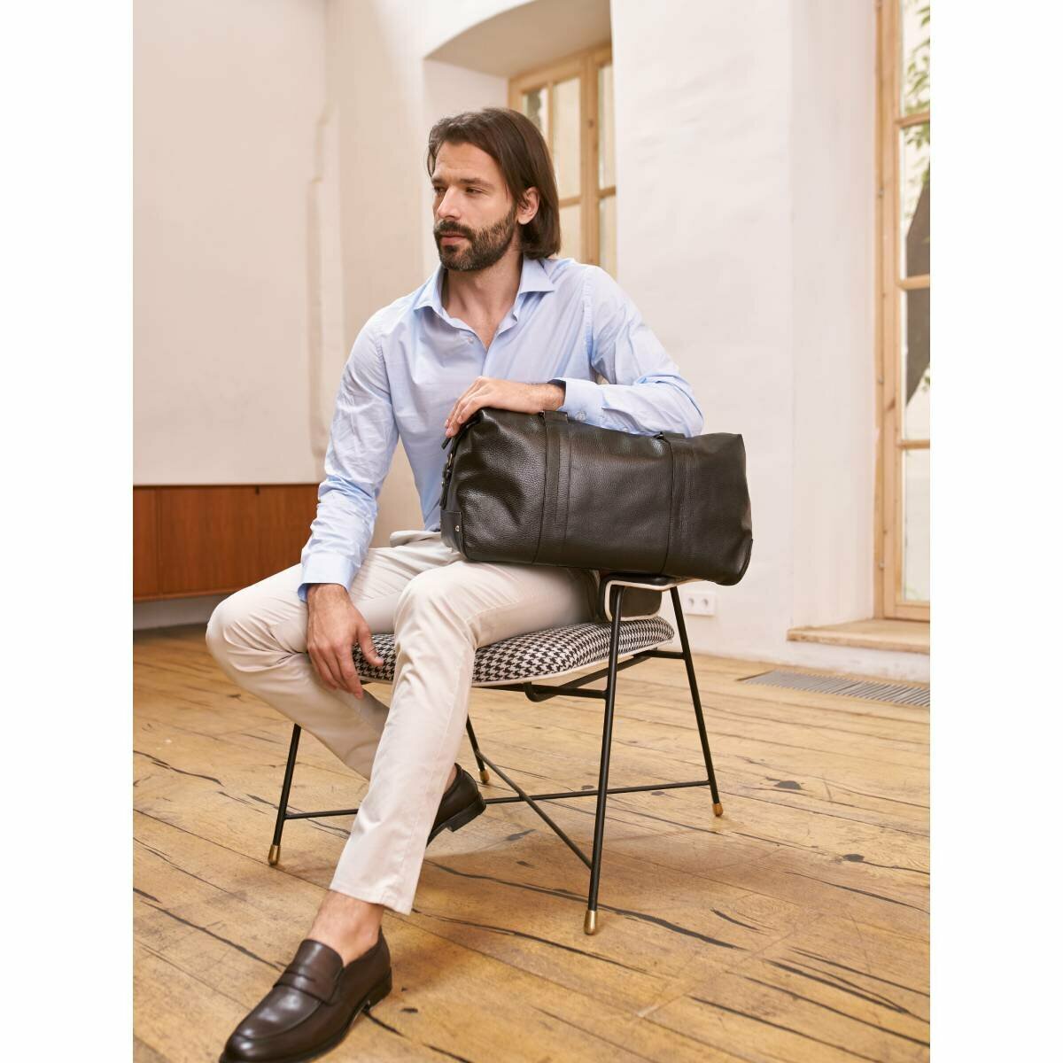 Кожаная дорожно-спортивная сумка Woodstock Black