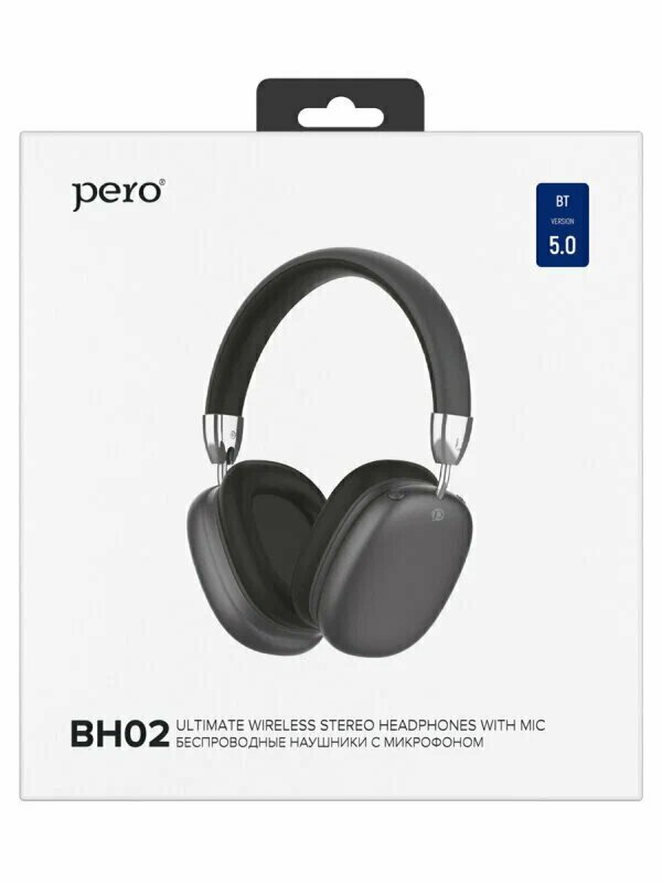 Наушники Pero Bh02, беспроводные, полноразмерные, микрофон, 300 мАч, до 8 часов, черные Pero 9568377 .
