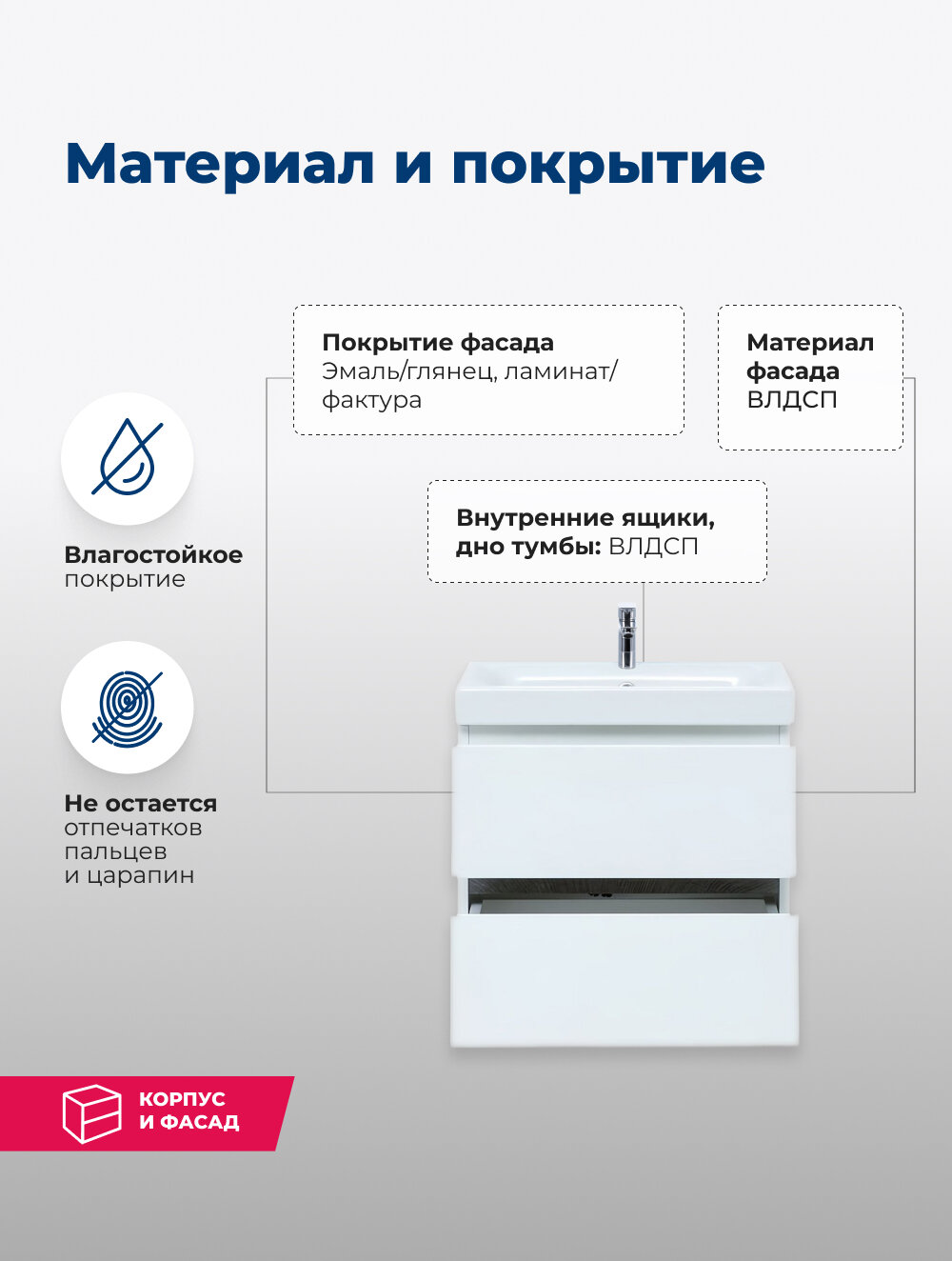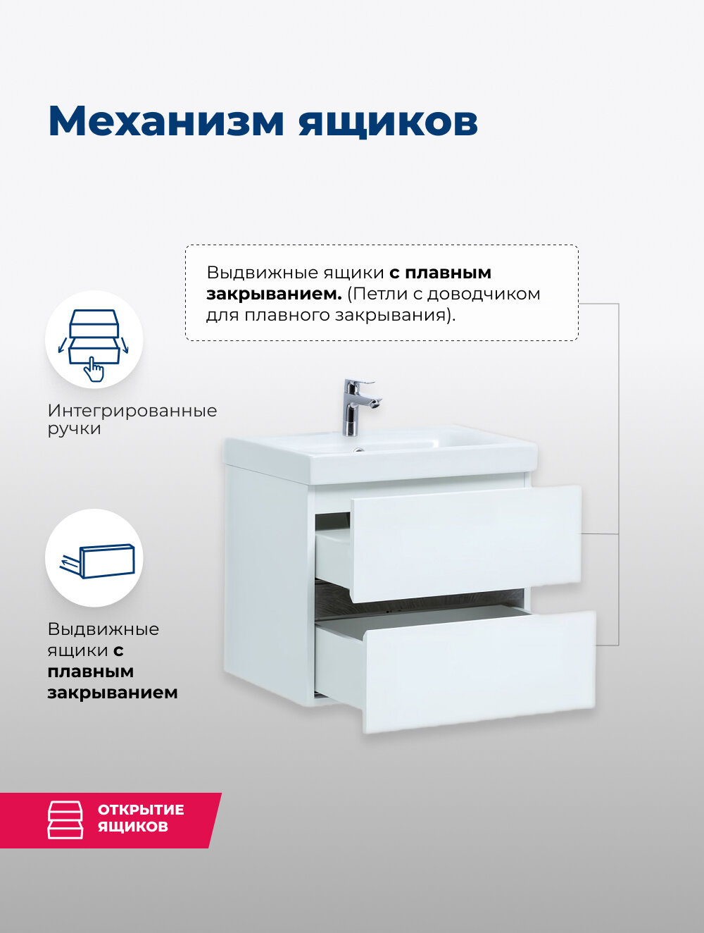 Тумба под раковину Aquanet Беркли 60 см 254289 белый глянцевый/дуб рошелье подвесная 2 ящика