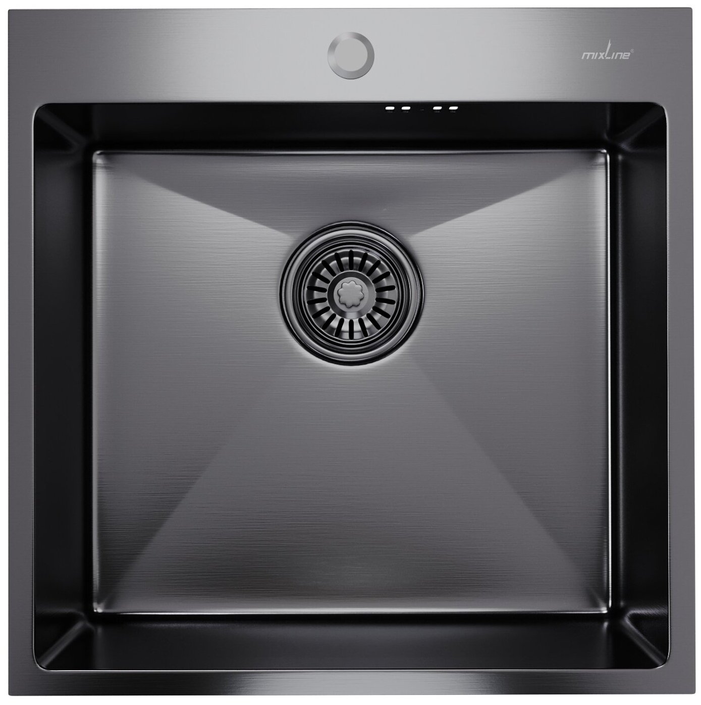 Кухонные мойки Мойка настол.монтаж 50х50 (3,0) вып 3 1/2 MIXLINE PRO 20см с сифоном (черный графит)